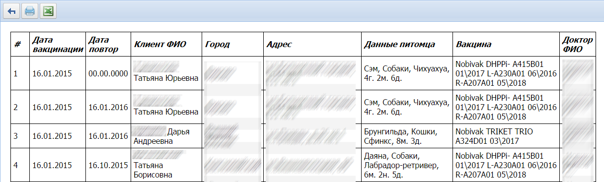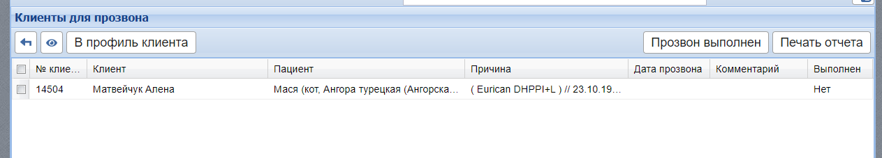 В Ветменеджере можно составлять отчет по повторным вакцинациям для прозвона и прозванивать клиентам, у питомцев которых через время запланирована повторная вакцинация.