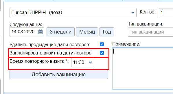 Сразу при проведении вакцинации планируйте визит на дату повтора.