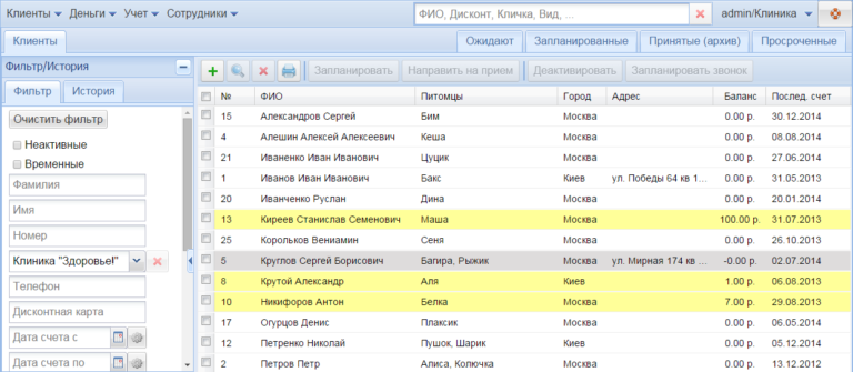 Всех клиентов принимаем через модуль Клиенты. Мы просто вводим всех принимаемых клиентов или редактируем их данные, если они изменились. Сегодня в программе больше ничего не нужно делать. Внесите всех пришедших на прием клиентов и это будет отличной работой вашей команды.
