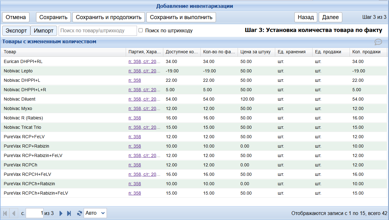 Дальнейшие действия будут аналогичными, как и при инвентаризации всех товаров.