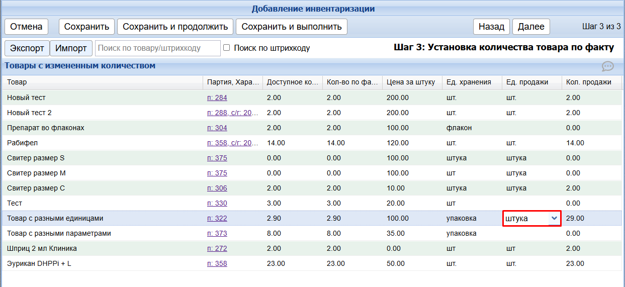 Как работать с разными единицами хранения и продажи при инвентаризации