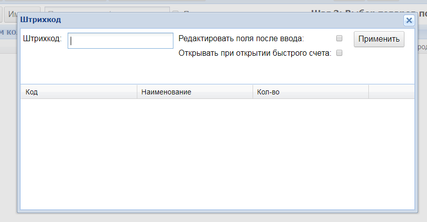 Выбор товаров по штрихкоду