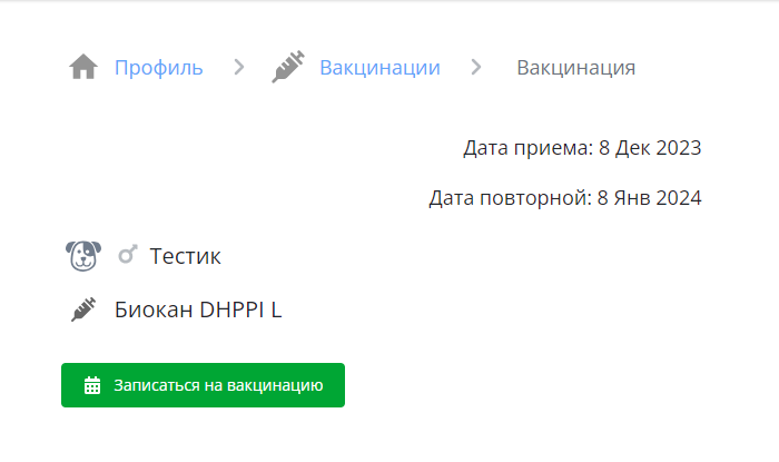 Вакцинации | Просмотр вакцинации |