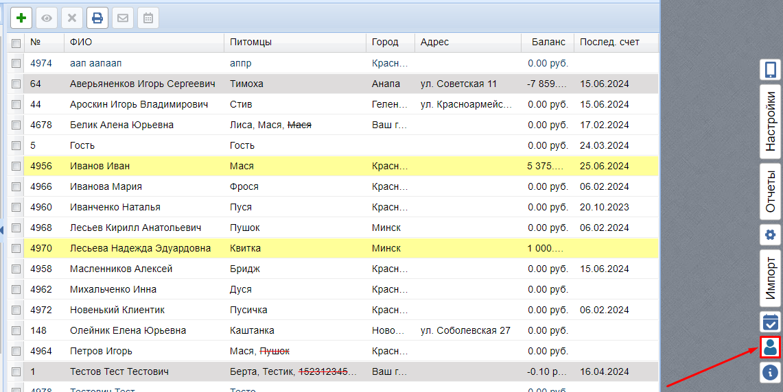 Если клиент не находится в этом окне, проверьте, указаны ли у его питомца вид и порода. Если эти данные не указаны, нужно отредактировать профиль питомца и указать их.