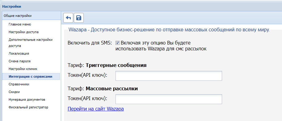 Если у вас Wazapa, то для использования рассылки по фильтру необходимо подключить услугу массовых рассылок Wazapa (для этого обратитесь в их поддержку). После чего в Ветменеджер в разделе Настройки - Интеграция с сервисами - Wazapa нужно прописать токен для массовых рассылок. Сохранить изменения.