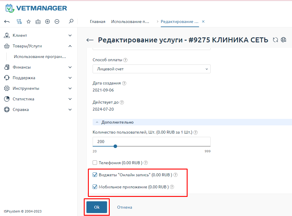 В программе Ветменеджер отдельно взимается оплата за дополнительные модули: