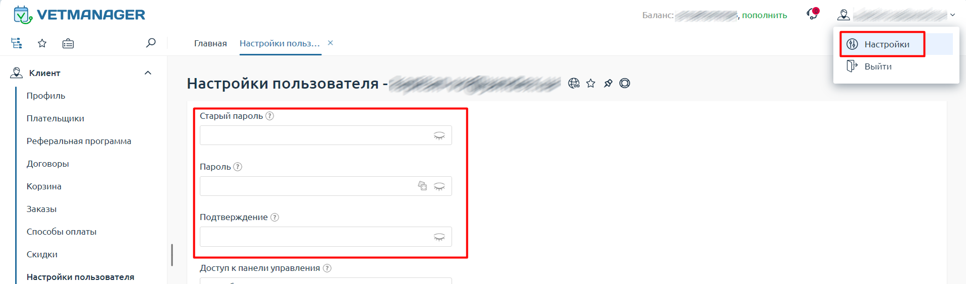 Как изменить пароль в сервисе оплат (биллинге)