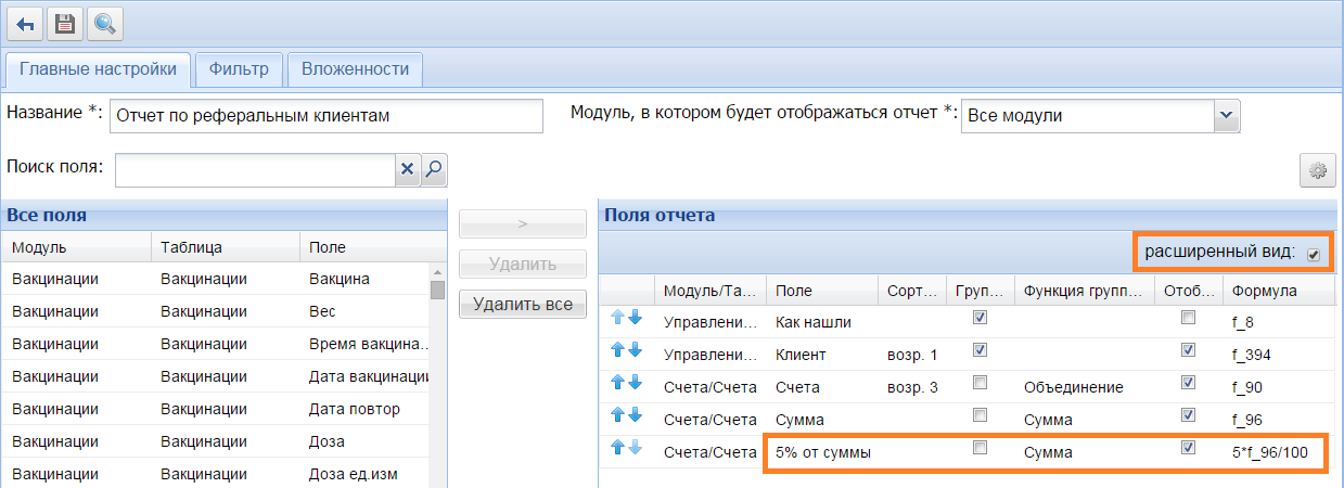 В отчете настроено по умолчанию 5% от суммы, можно перейти в редактирование отчета, нажать Расширенный вид и в формуле изменить цифру 5 на нужную.