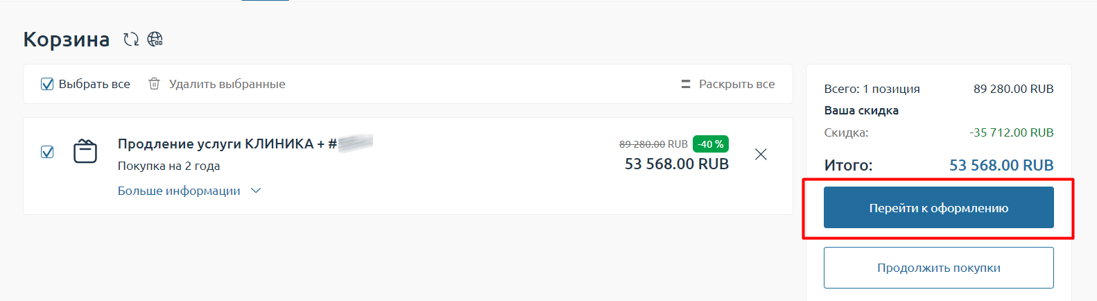 Далее необходимо нажать кнопку Перейти к оформлению.