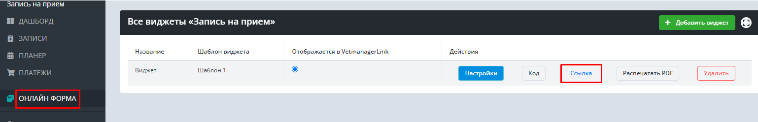 Ее можно получить в сервисе онлайн-записи, кликнув по слову "Ссылка" (см. скриншот)
