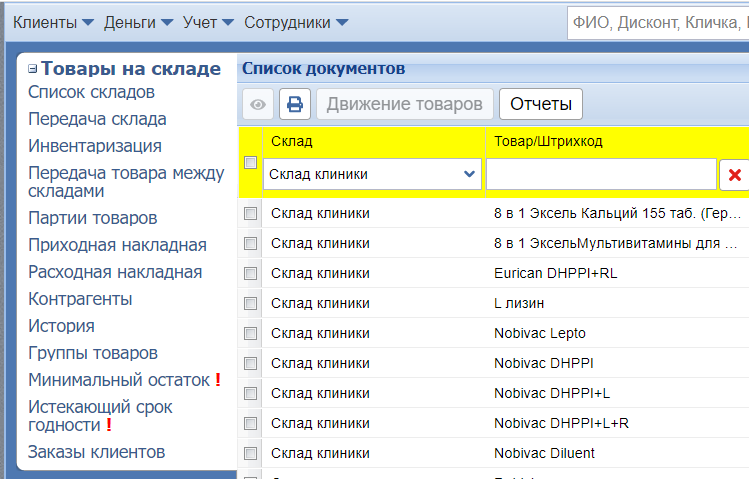 Перед запуском в работу этого модуля разберитесь с учетом в вашей клинике. У вас товар хранится в одном месте или в разных? Тогда ведите складской учет отдельно по этим местам, так будет проще. Если на приёме есть запас препаратов, создайте отдельный склад и для него. Максимально отразите вашу реальность в программе, так вам будет проще.