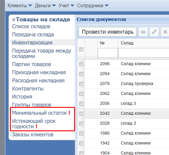 Обратите внимание на такие полезные функции склада как: напоминание об истекающем сроке годности и оповещение о минимальном остатке.