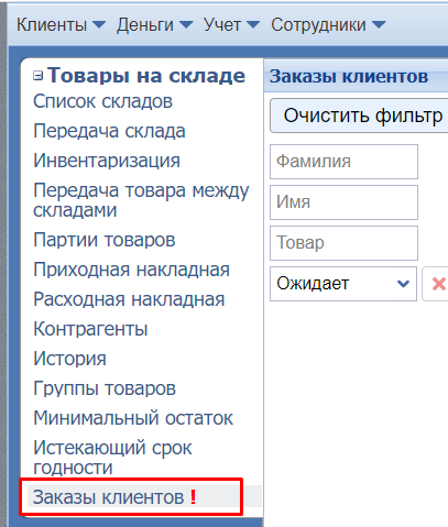 Когда товар появится на складе в требуемом количестве (будет выполнена приходная накладная с ним), в разделе Заказы клиентов появится восклицательный знак.