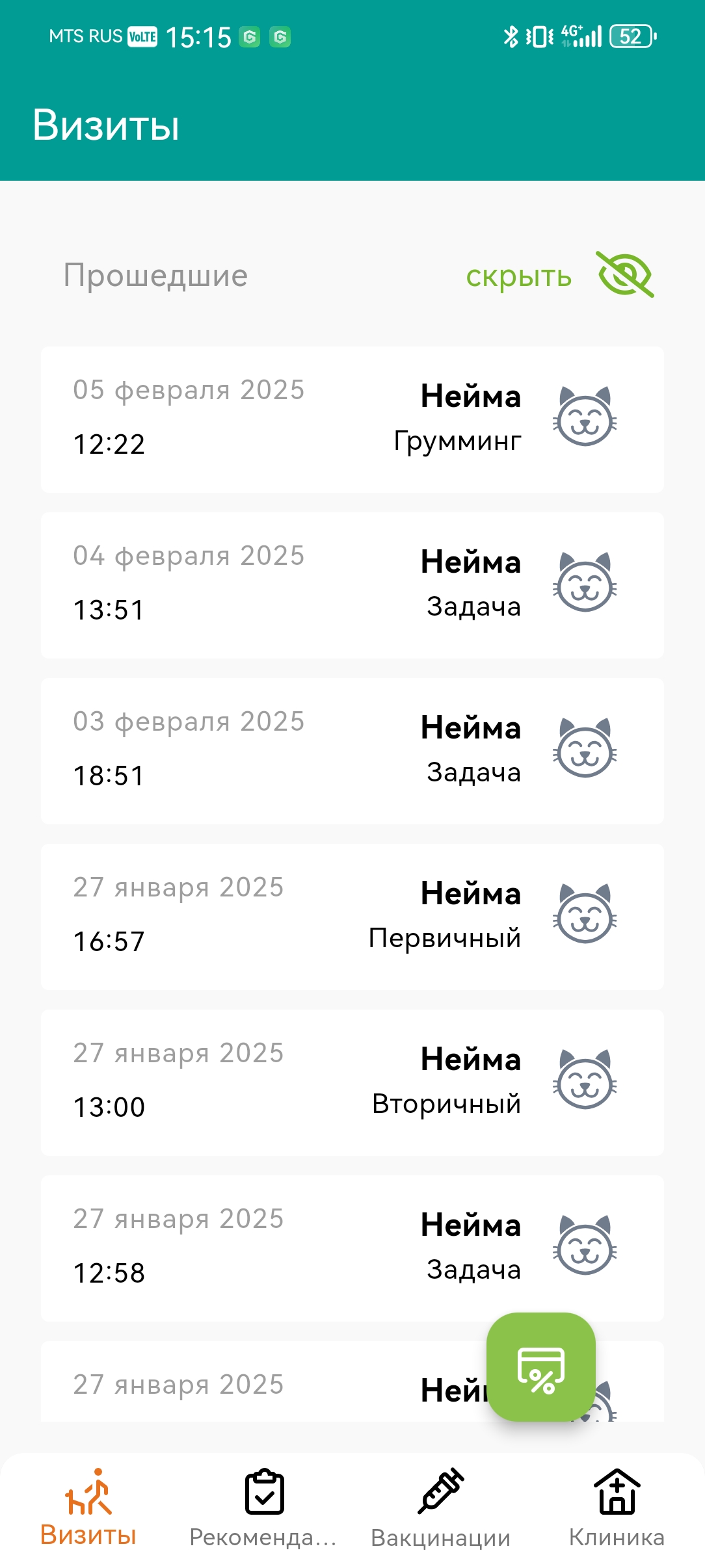 В приложении Pet in Vet внизу экрана на всех вкладках нижнего меню расположена кнопка со скидочной картой клиента.