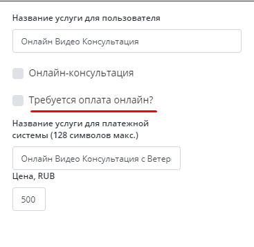 Проставить галочку Требуется оплата онлайн. Ввести цену.