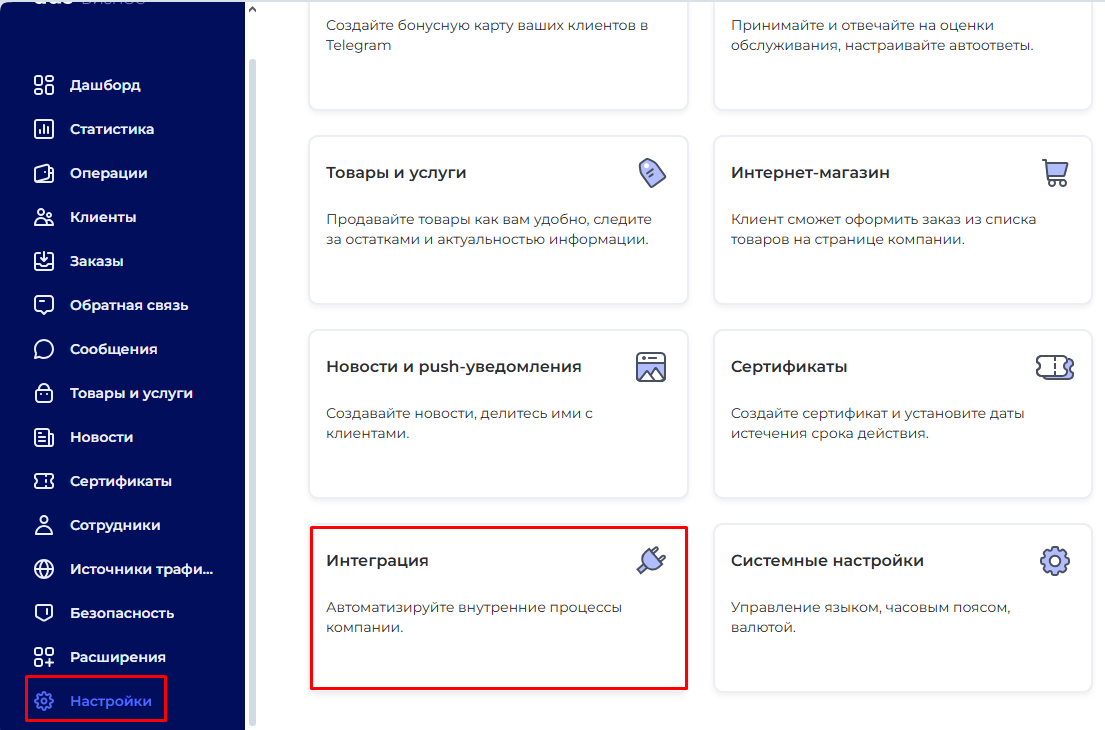 Интеграция настроена.