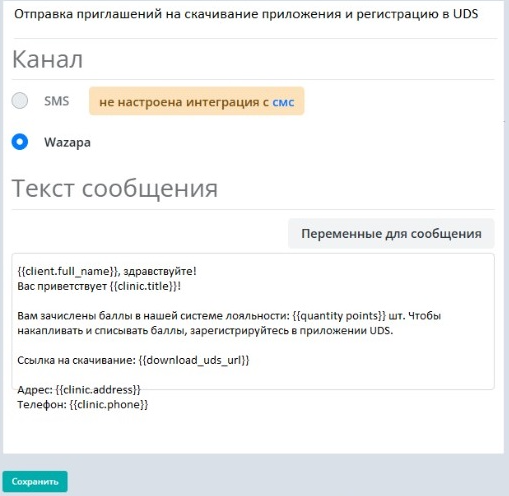 Клиенты, не зарегистрированные в UDS, будут автоматически получать сообщения с приглашением скачать приложение и зарегистрироваться.