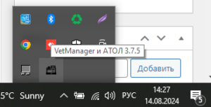 Для дальнейшей настройки интеграции с ТС ПИоТ нужно открыть Атол-клиент. Он расположен в трее.