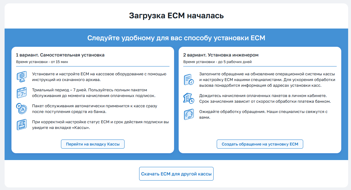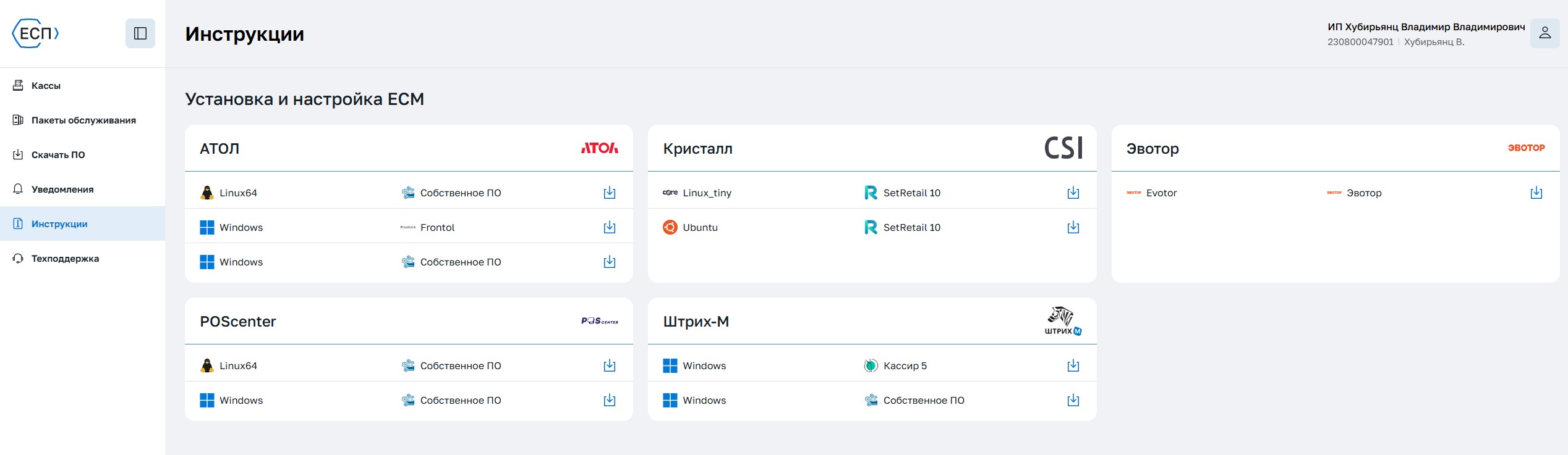 В личном кабинете ЕСП размещены подробные инструкции по установке компонентов ТС ПИоТ для ККТ Атол и Эвотор.
