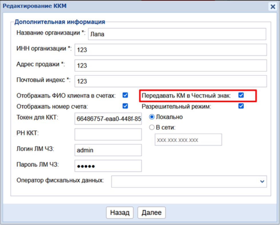 ЛМ ЧЗ используется как резервный механизм. Если ТС ПИоТ временно недоступен в связи с аварийной ситуацией, система может выполнять прямую проверку кодов маркировки через ЛМ ЧЗ. Текущий токен авторизации (Токен для ККТ), который используется для онлайн-проверки разрешительного режима и инициализации Локального Модуля «Честный ЗНАК», станет недействительным 30.06.2026.