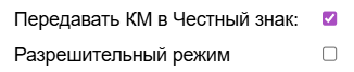 Отметить чекбокс Передавать КМ в Честный знак, если он не был отмечен.