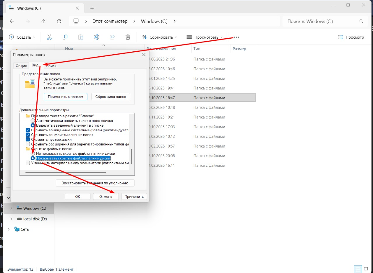 Включите на ПК отображение скрытых файлов