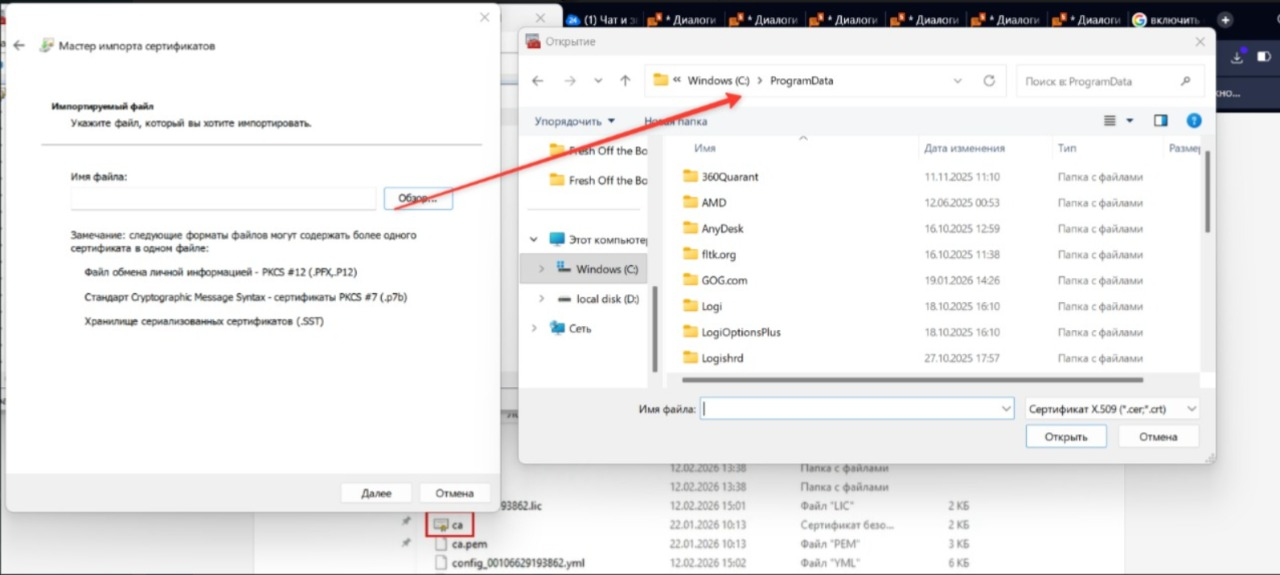 4. Выбрать твой .crt или .pem файл.
