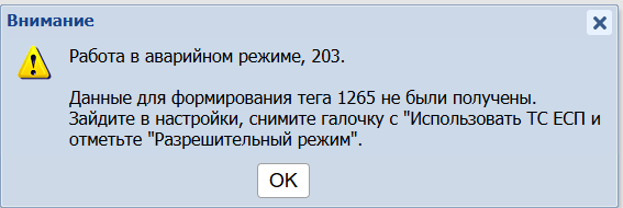 В этом случае пользователь должен зайти в настройки фискального регистратора и снять галочку с чекбокса "Использовать ТС ЕСП", отметить чекбокс "Разрешительный режим" и заполнить логин-пароль и способ установки.